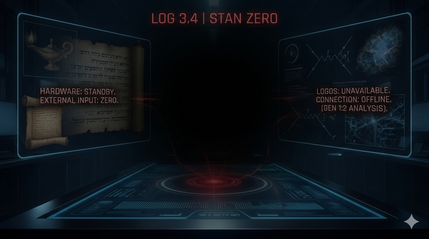 Piotr: (wpatruje się w czarny monitor) Hardware gotowy. Zasilanie podpięte. Ale spójrzcie na parametry wejściowe… Ta ciemność nad otchłanią (Genesis 1:2) nie wygląda na zwykłą pustkę. To nie jest po prostu „brak danych”.
