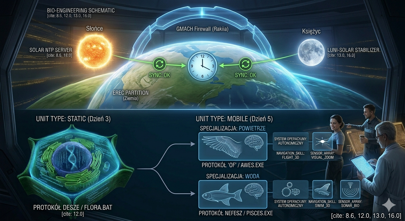 Piotr: (patrzy na ekran z kodem) Zosiu, profesorze… Do tej pory mieliśmy architekturę (niebo/ziemia) i statyczne programy (rośliny). Teraz Genesis 1:20 mówi: „Niech się zaroją wody od istot żywych, a ptaki niech latają nad ziemią”. Dla mnie to przeskok z programowania strukturalnego na programowanie obiektowe z zaawansowaną logiką. To wprowadzenie jednostek, które mają własne „ja” (choćby podstawowe). Dlaczego nazywamy to pierwszą Sztuczną Inteligencją?